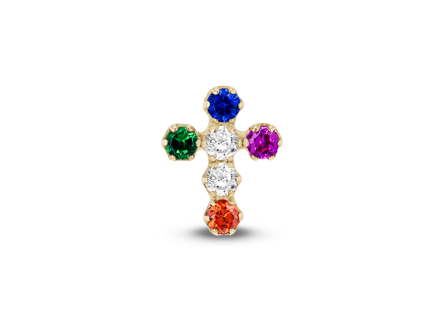 9ct Yellow Gold Multi Coloured Zirconia Cross Labret Stud