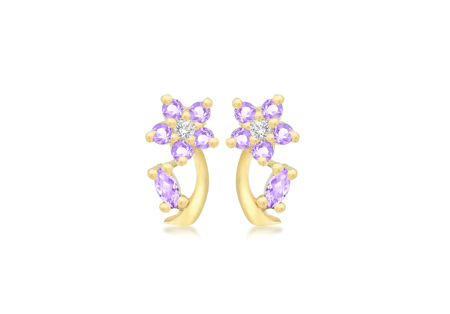 9ct Yellow Gold Purple and White Zirconia Flower Stud Earrings