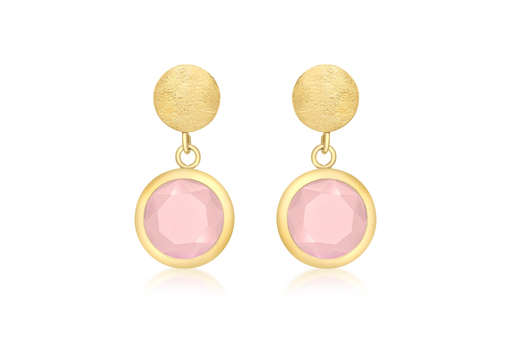 9ct Yellow Gold Round Pink Crystal Drop Earrings