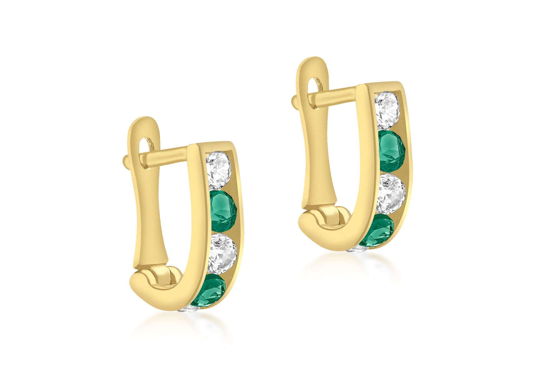 9ct Yellow Gold White & Green Zirconia Half-Hoop Earrings