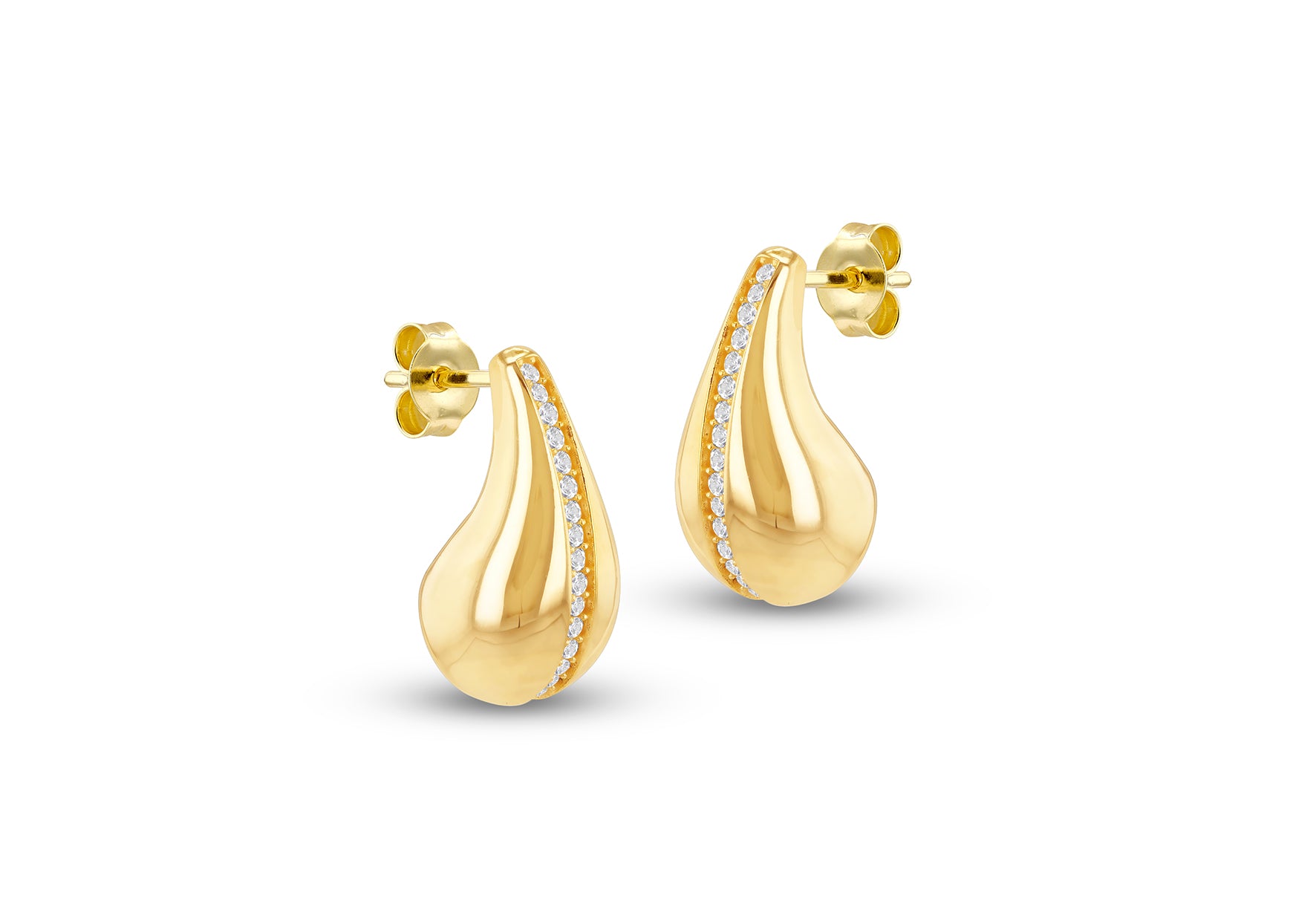 9ct Yellow Gold White Zirconia Teardrop Stud Earrings