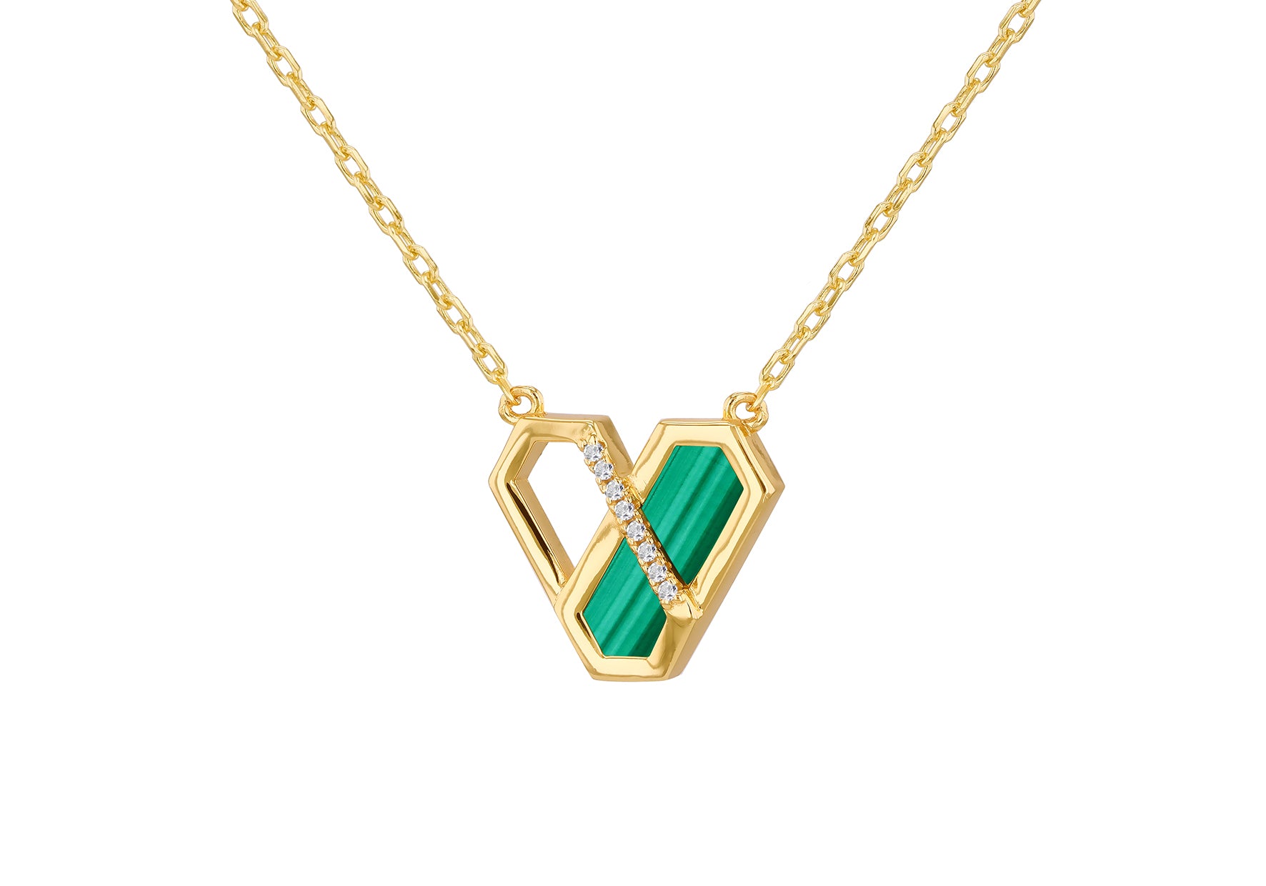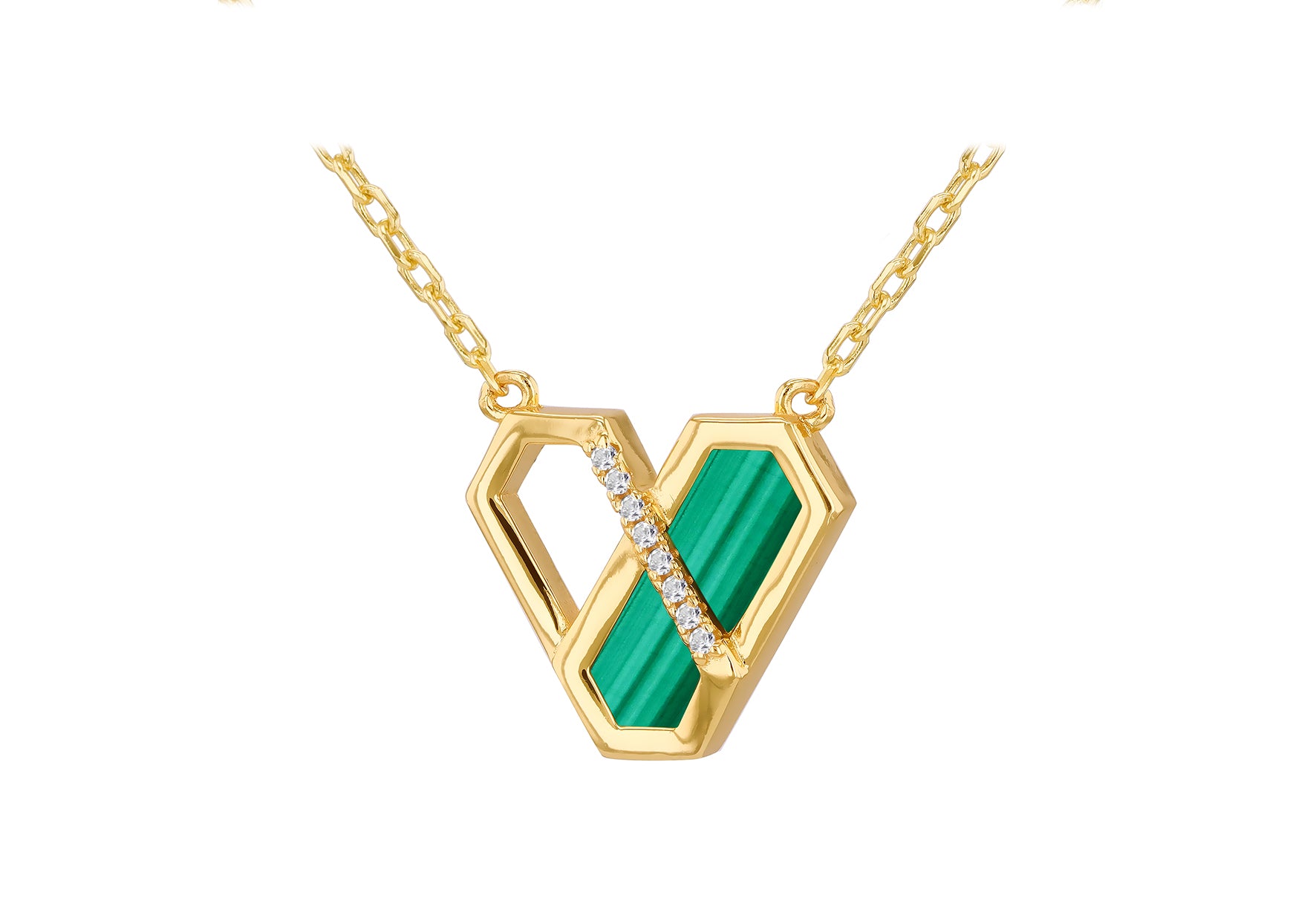 Gold Plated Sterling Silver Hex Heart Malachite Zirconia Pendant