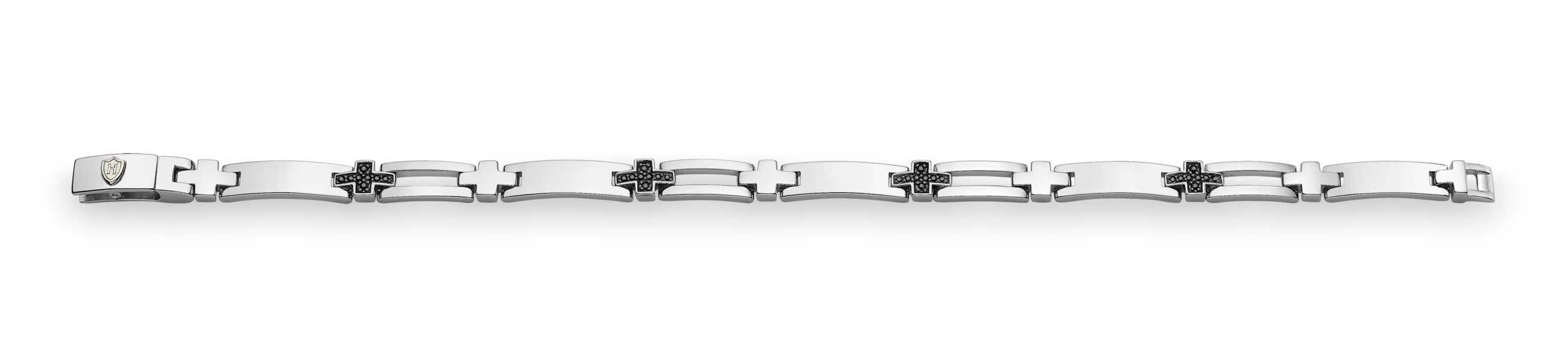 Hoxton London Men's Sterling Silver Black Sapphire Set Cross Bar Bracelet