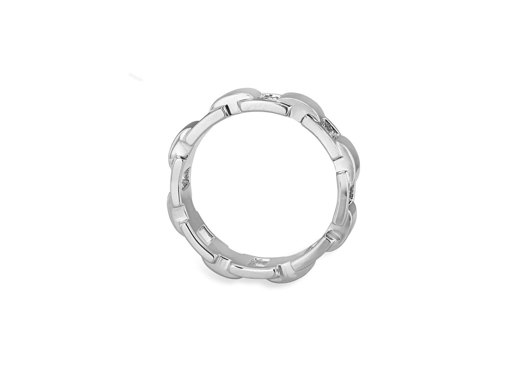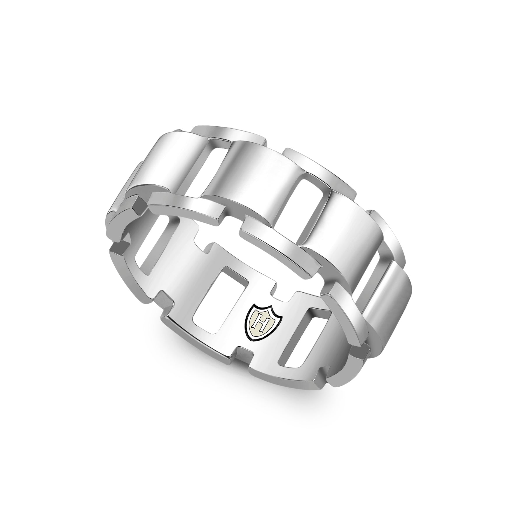 Hoxton London Men's Sterling Silver Brick High Polished Open Square Link Ring