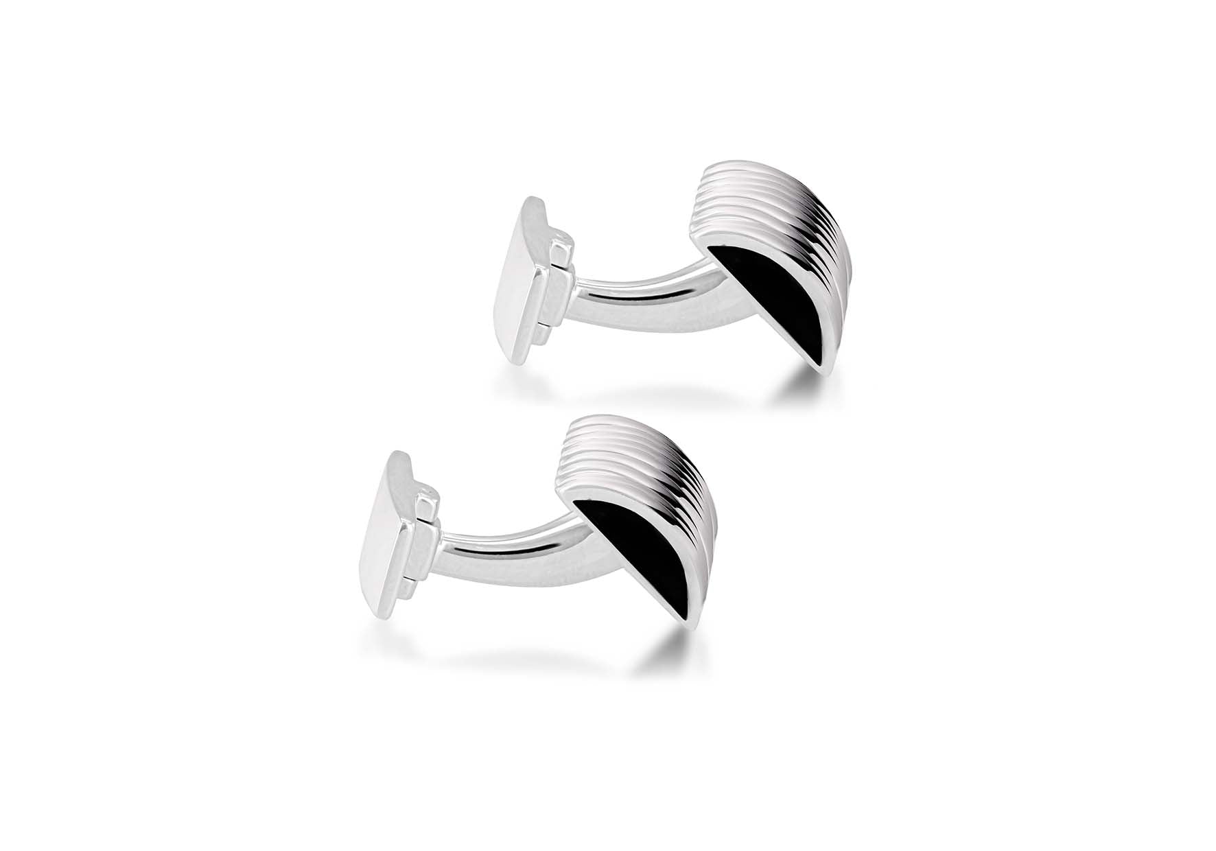 Hoxton London Men's Sterling Silver Ribbed Half Cylinder with Black Agate Cufflinks