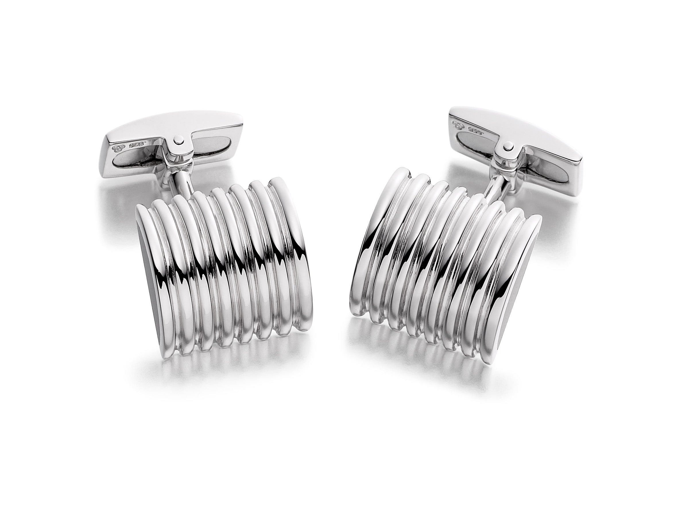 Hoxton London Men's Sterling Silver Ribbed Half Cylinder with Black Agate Cufflinks Width: 25mm; Stone Details: Black Agate; Brand: Hoxton Cufflinks Metal Colour: Silver Metal: Silver