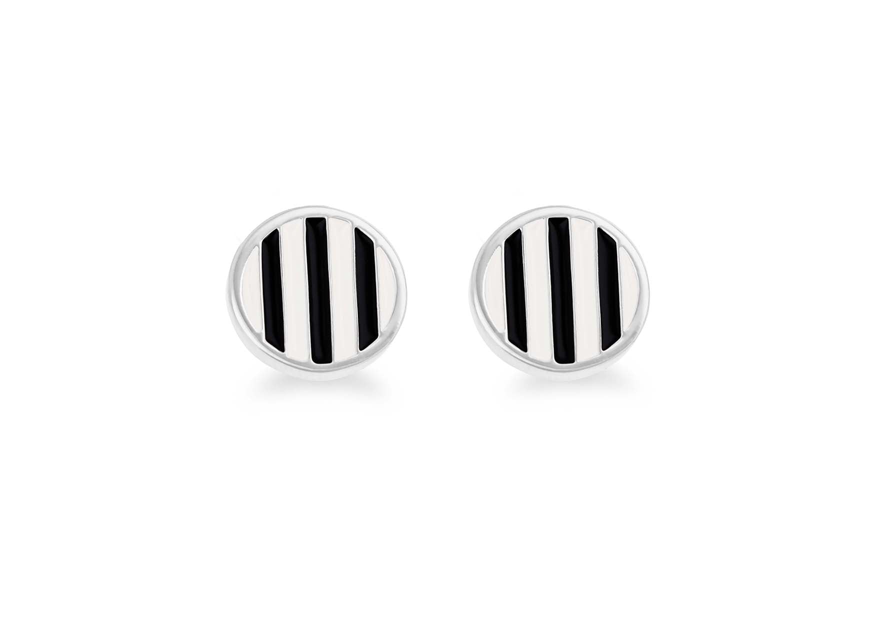 Sterling Silver Black & White Striped Enamel Cufflinks