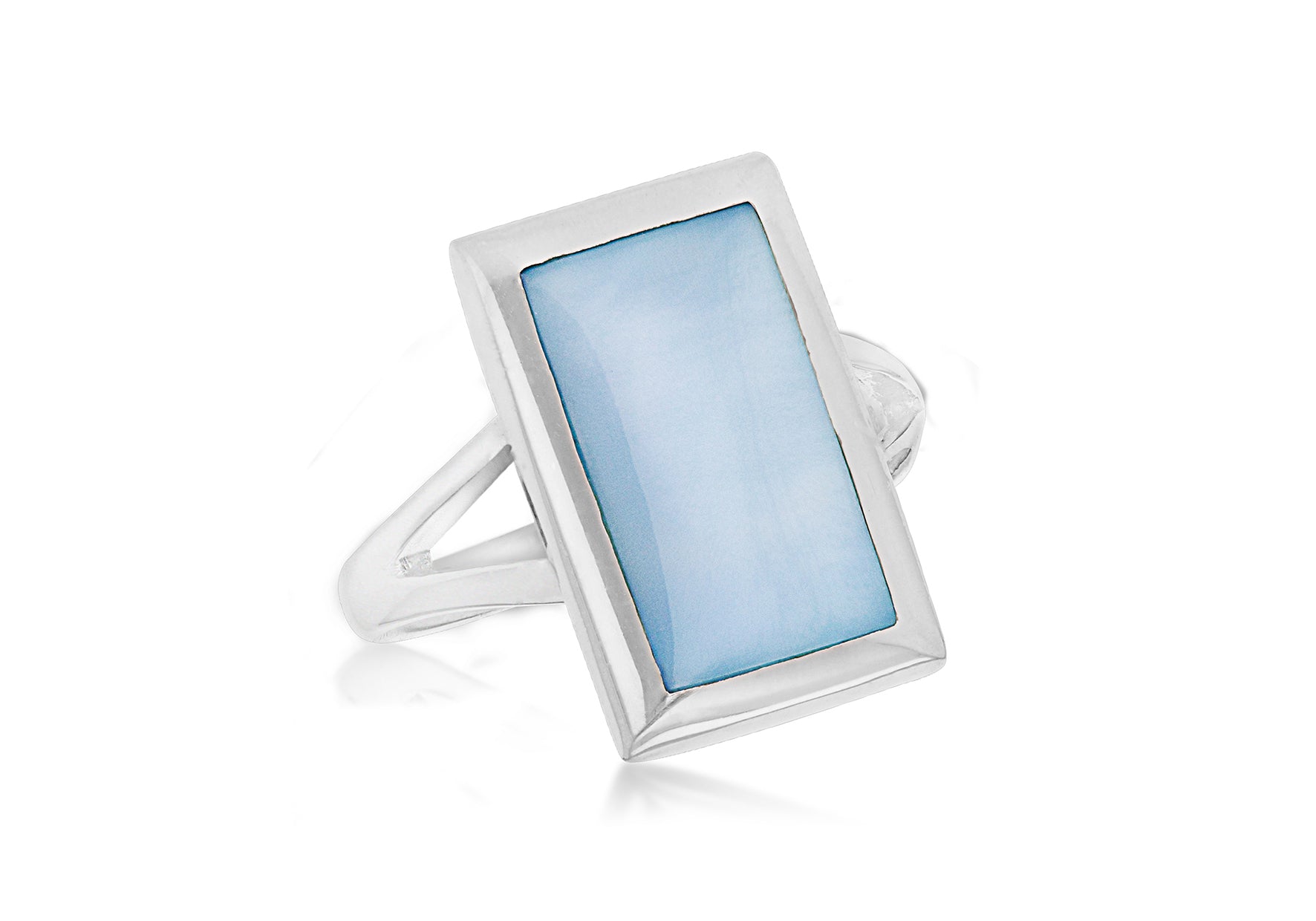 Details: Ring Face 12mm x 18.5mm Ring Shank: 2.5mm Finish: Polished Setting: Rubover Stone Details: Blue Mother of Pearl Style: Stone Set Product Type: Rings Metal Colour: Silver Metal: Silver