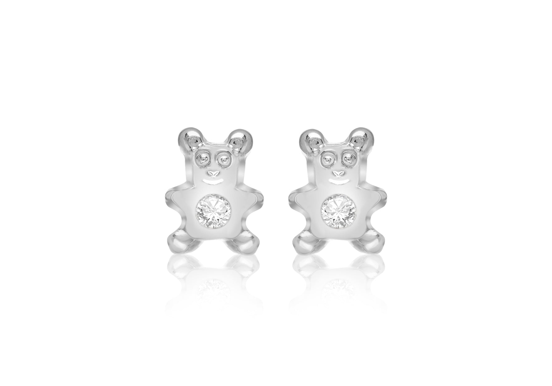 Sterling Silver White Zirconia Teddy Stud Earrings