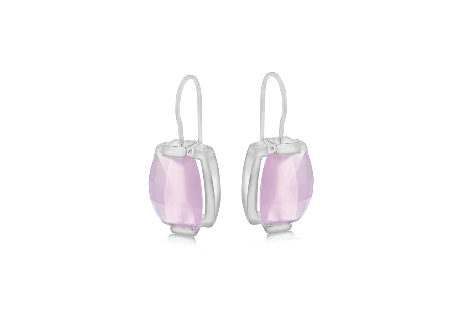 Width: 11.4mm Height: 28.5mm Finish: Polished Fitting: Hook Setting: Claw Stone Details: 2 x 10mm x 12mm Cushion Shape Pink Crystalls Style: Stud Product Type: Earrings Metal Colour: Silver Metal: Silver