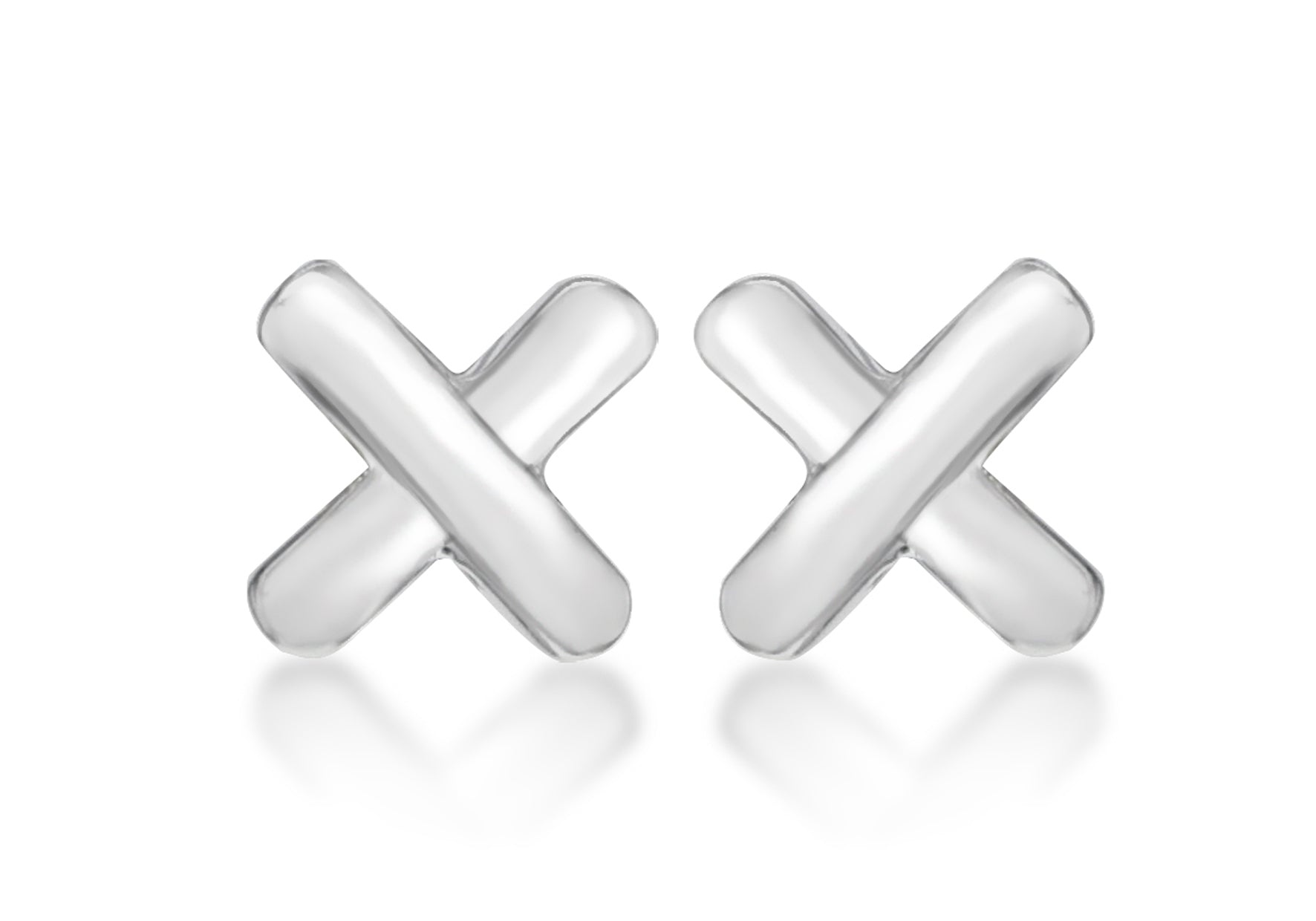 These earrings offer a modern twist on a timeless symbol. Each earring forms a delicate 'X', the universal sign for a kiss, subtly shaped into a sleek cross silhouette. Clean lines and a polished finish lend a minimalist elegance, making them perfect for everyday wear or understated layering. Lightweight yet impactful, they bring a quiet confidence to any look.