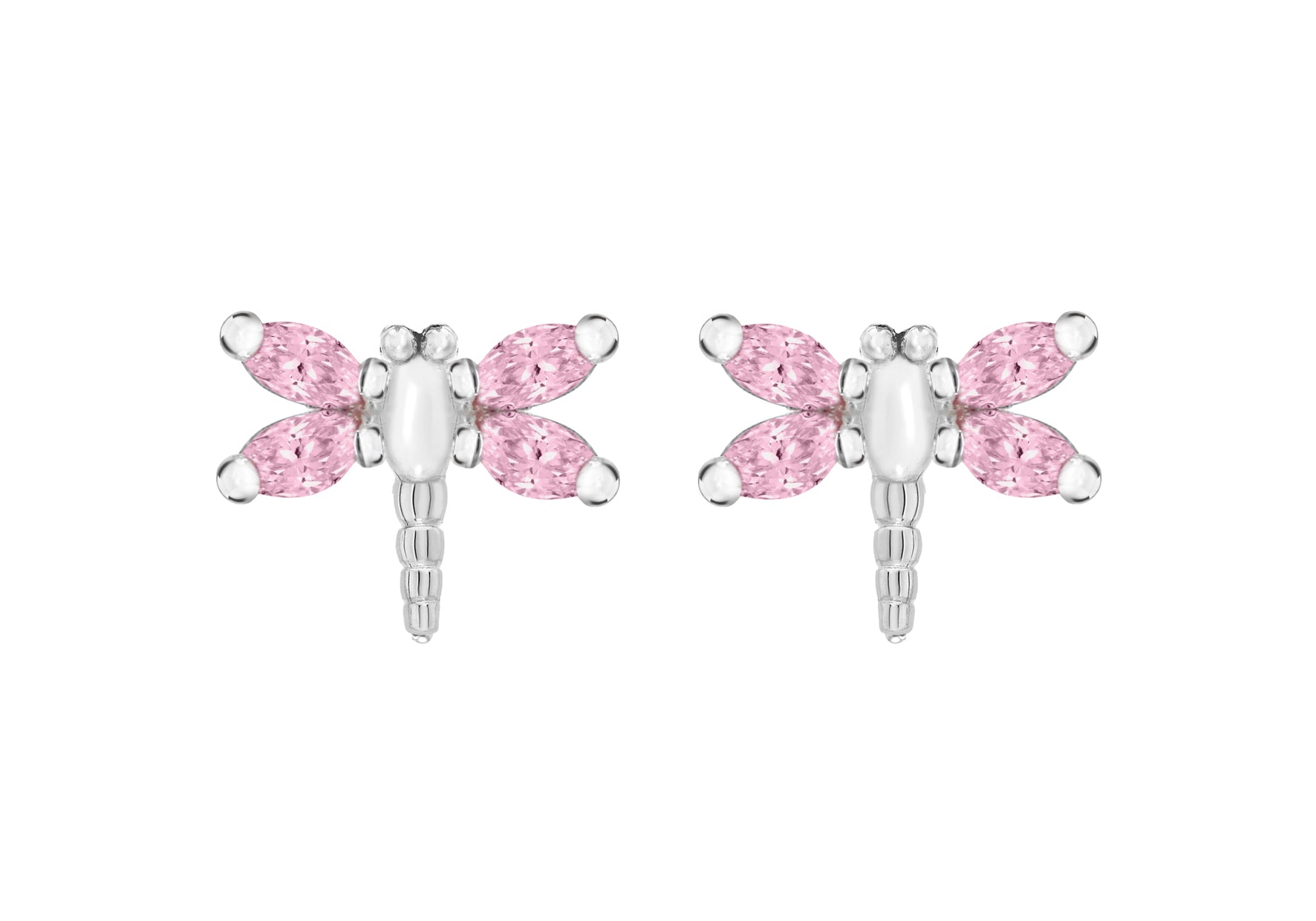 Sterling Silver Pink Zirconia Dragonfly Stud Earrings