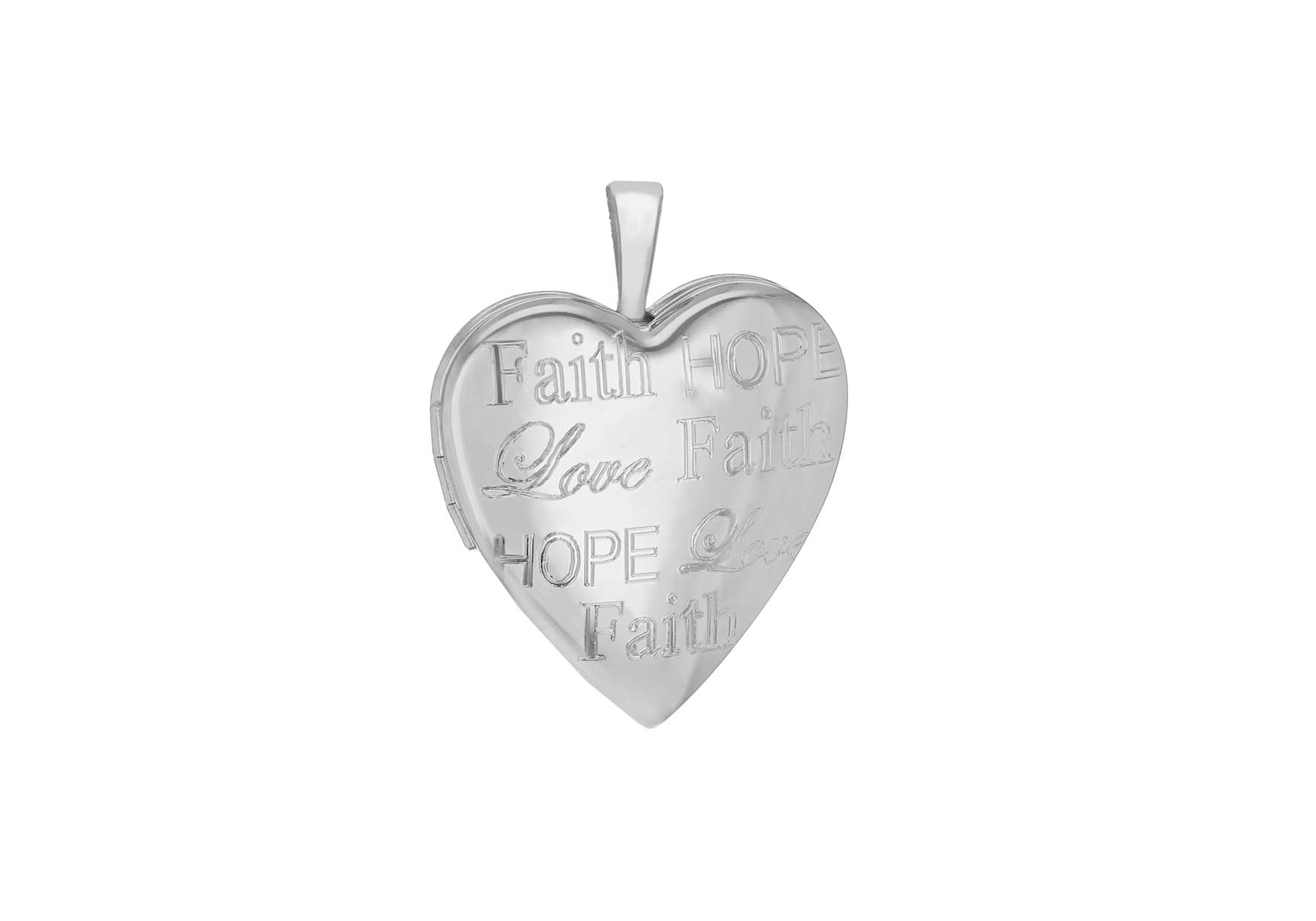Sterling Silver Hope Faith and Love Heart Locket Pendant