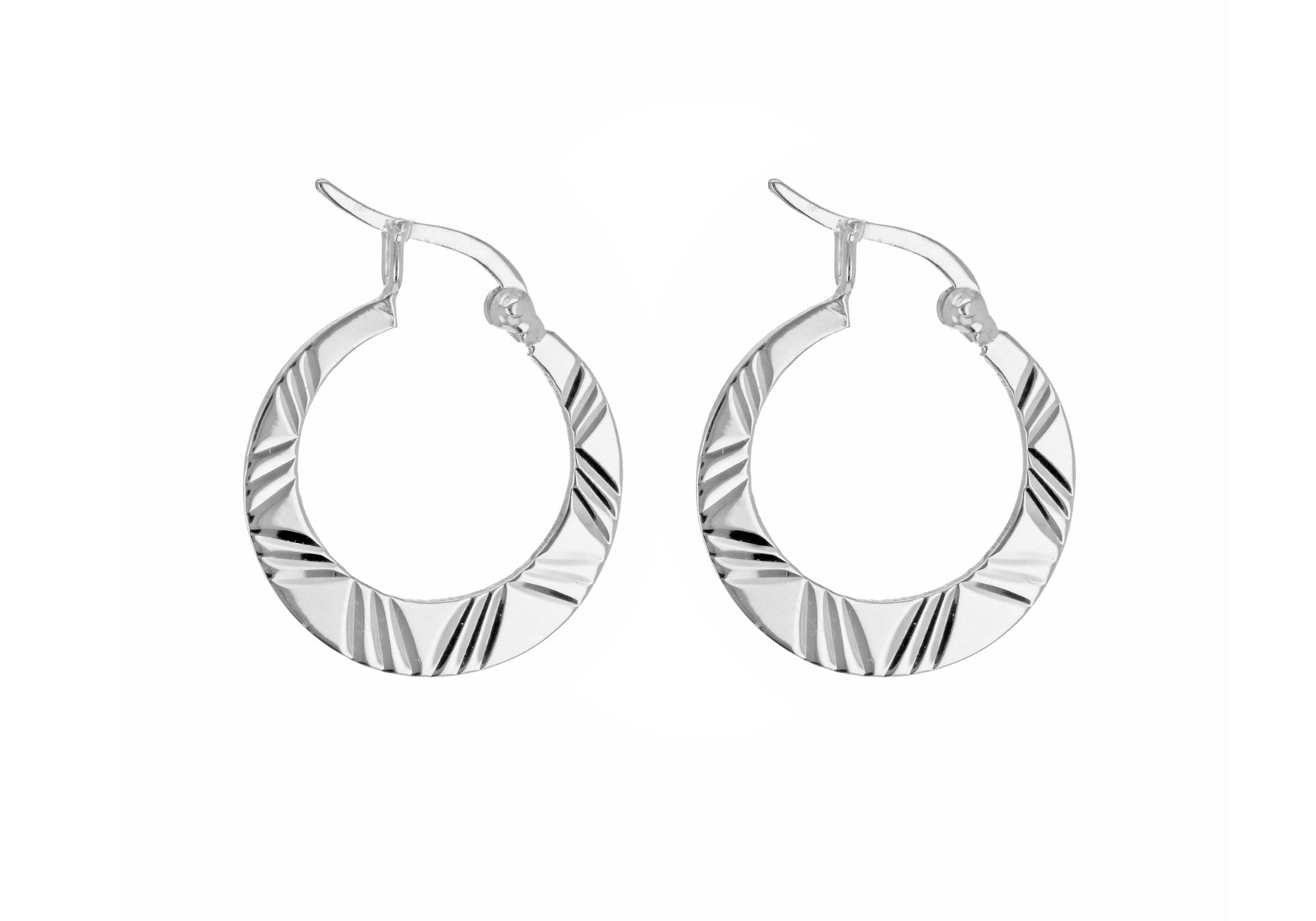 Sterling Silver Diamond Cut Flat Creole Earrings