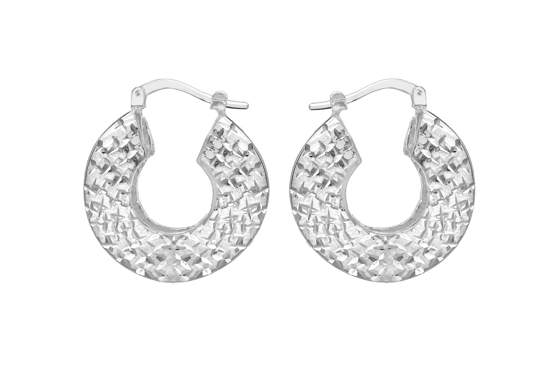Width: 7.5mm; Diameter: 24mm; Finish: Diamond Cut; Fitting: Hinged Post; Style: Creole Metal Colour: Silver Metal: Silver