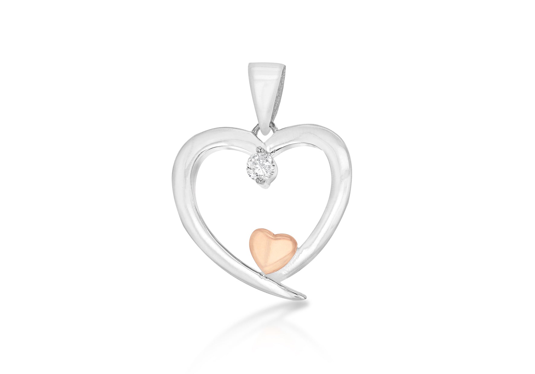 Pendant Height: Including Bail 25mm Pendant Width: 18.9mm Gold Details: Rose Gold Plated & Rhodium Plated Finish: Polished Setting: Claw Stone Details: 1 x 3mm Round White CZ Style: Stone Set Product Type: Pendants Metal Colour: 2 Colour Metal: Silver