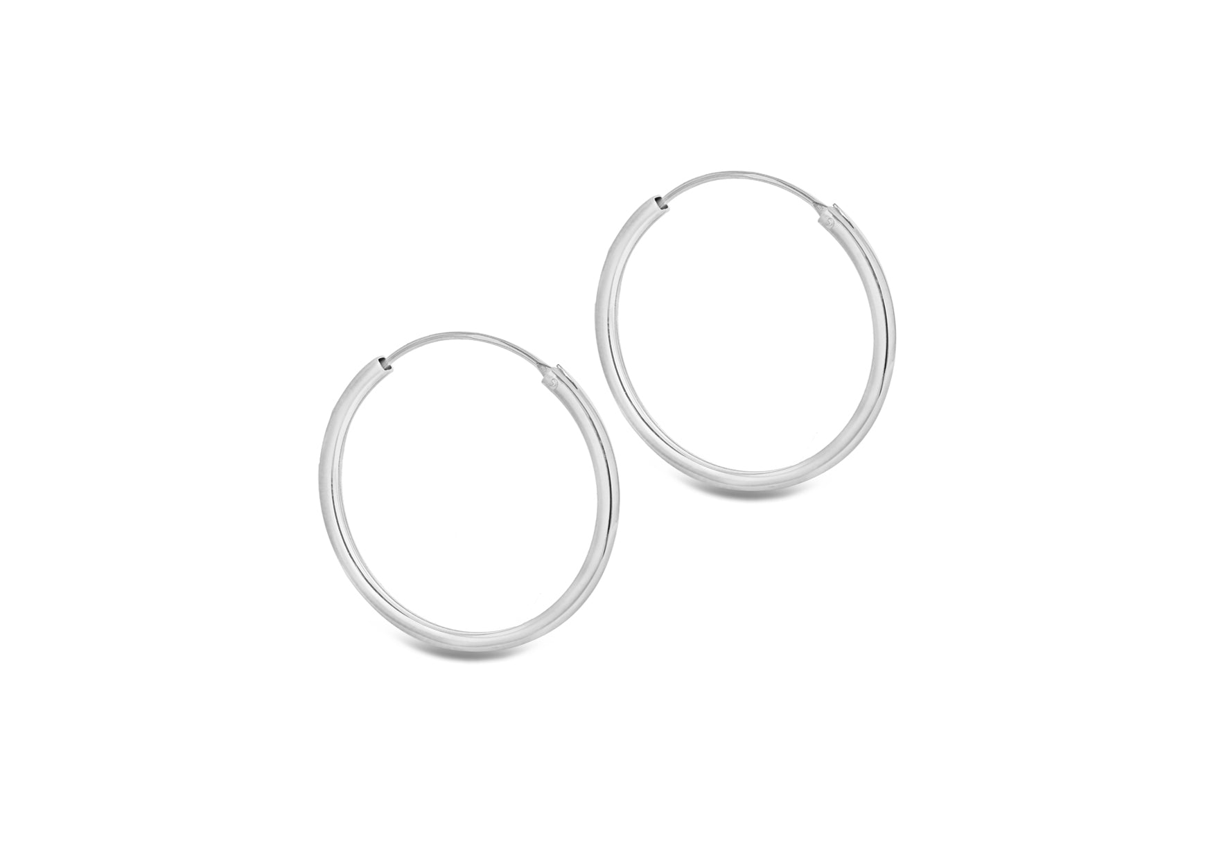 Width: Tube 2mm Diameter: 30mm Finish: Polished Fitting: Endless Hoop Style: Hoop Product Type: Earrings Metal Colour: Silver Metal: Silver
