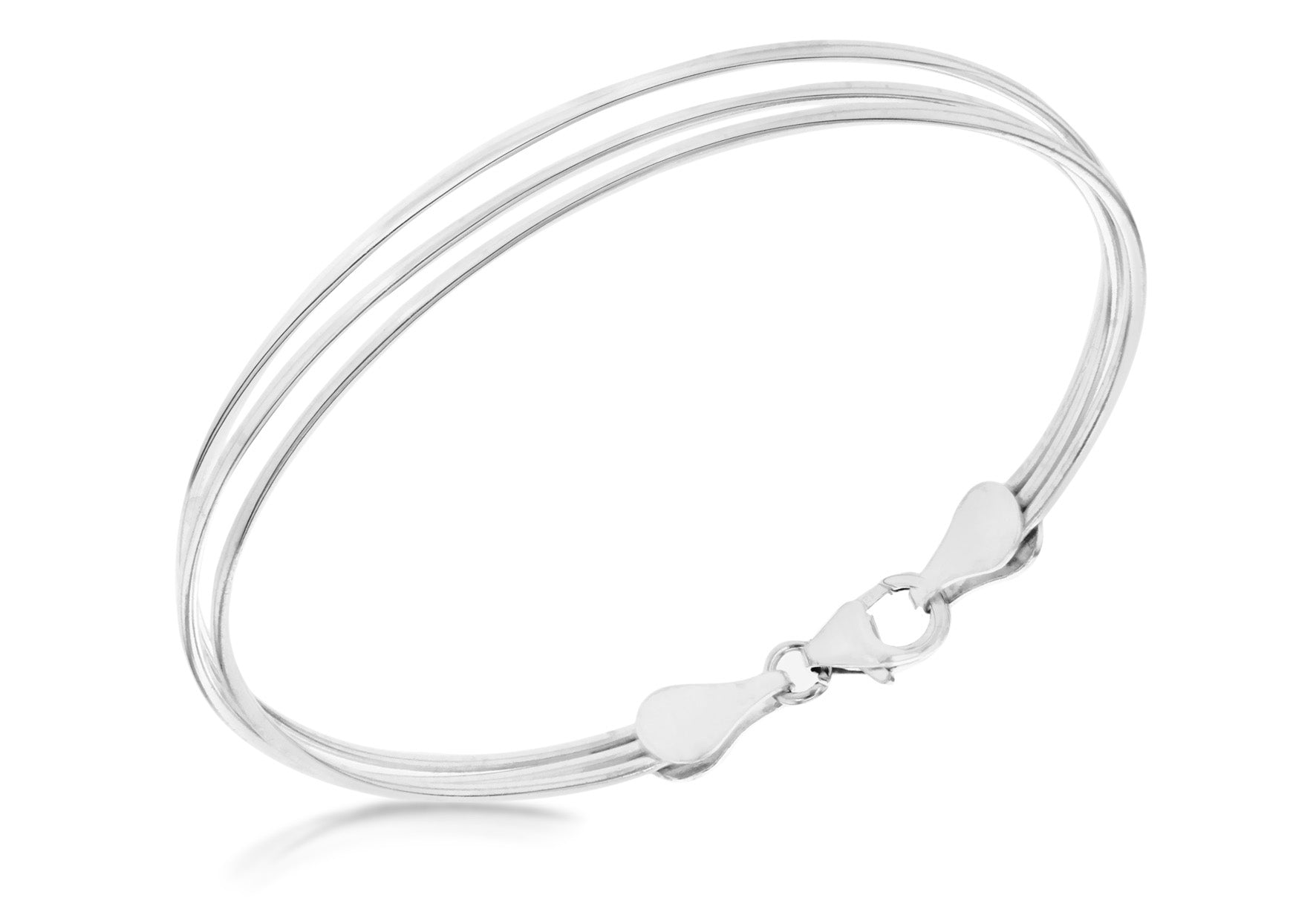 Shape: Round Bangle Width: 4mm Width: 60mm Diameter: 60mm Clasp: Lobster Style: Plain Product Type: Bangles Metal Colour: Silver Metal: Silver