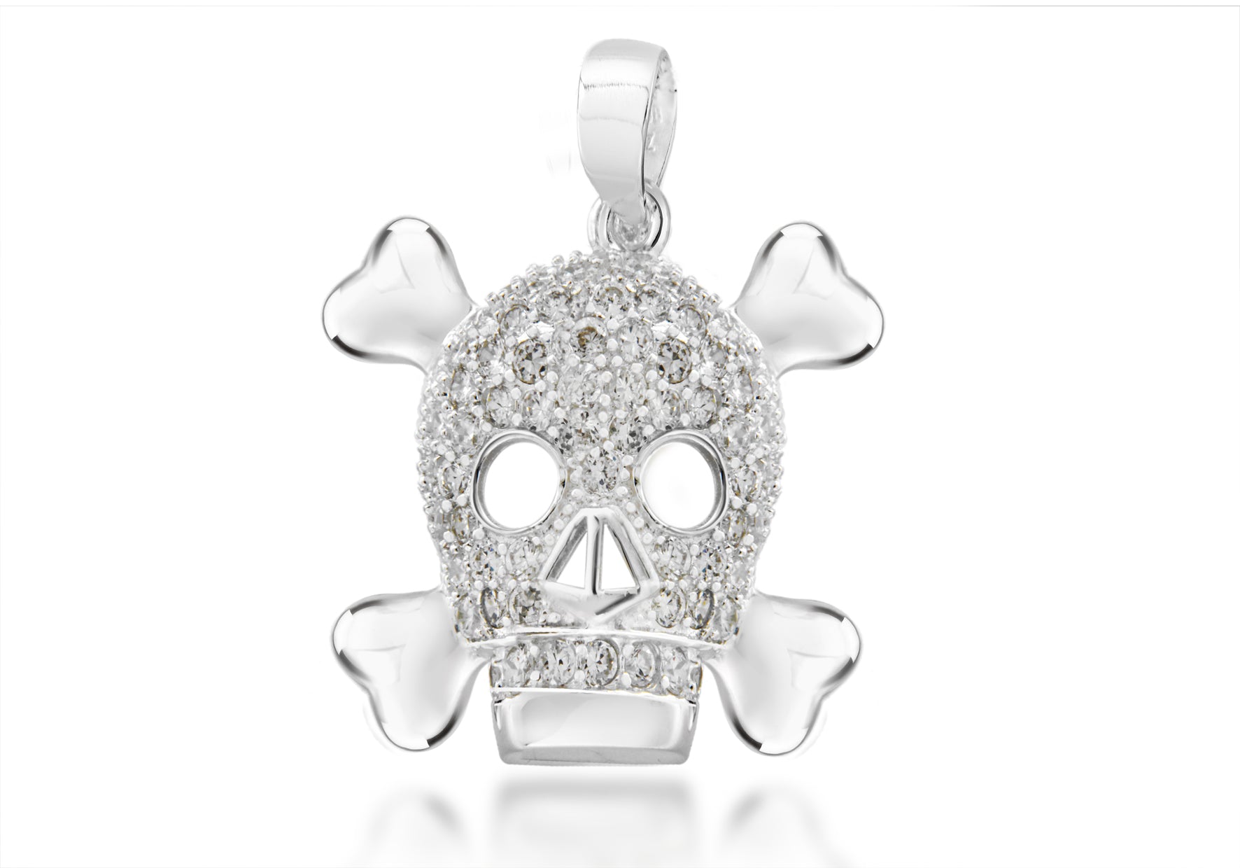 Sterling Silver Zirconia Skull and Crossbones Pendant