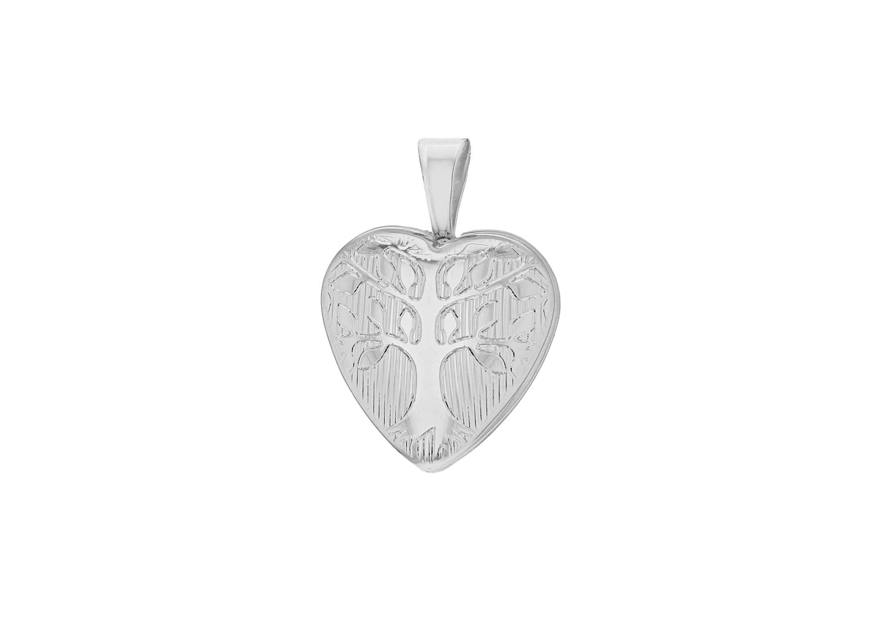 Sterling Silver Rhodium Plated Polished Satin Tree Heart Locket