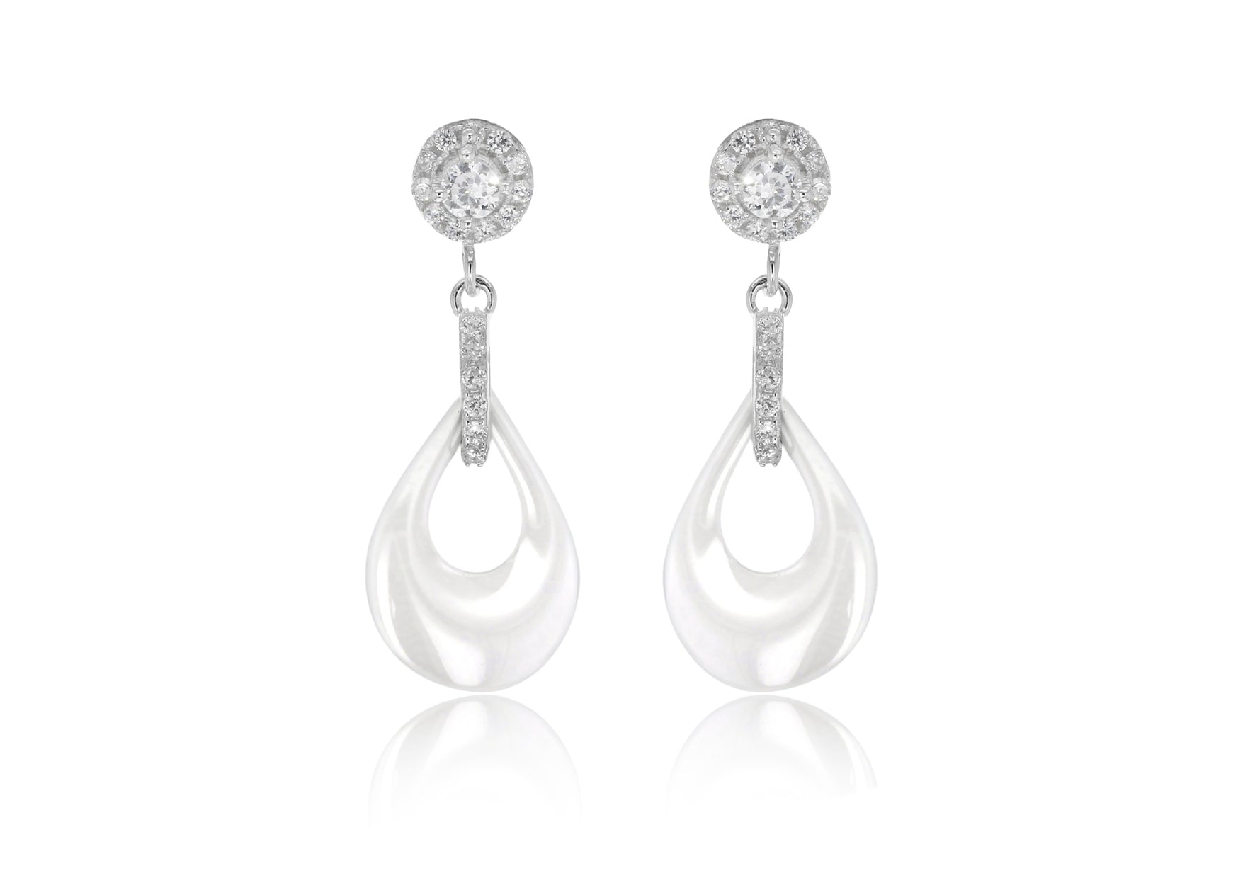 Sterling Silver Rhodium Plated White Ceramic Round Zirconia  Teardrop Earrings