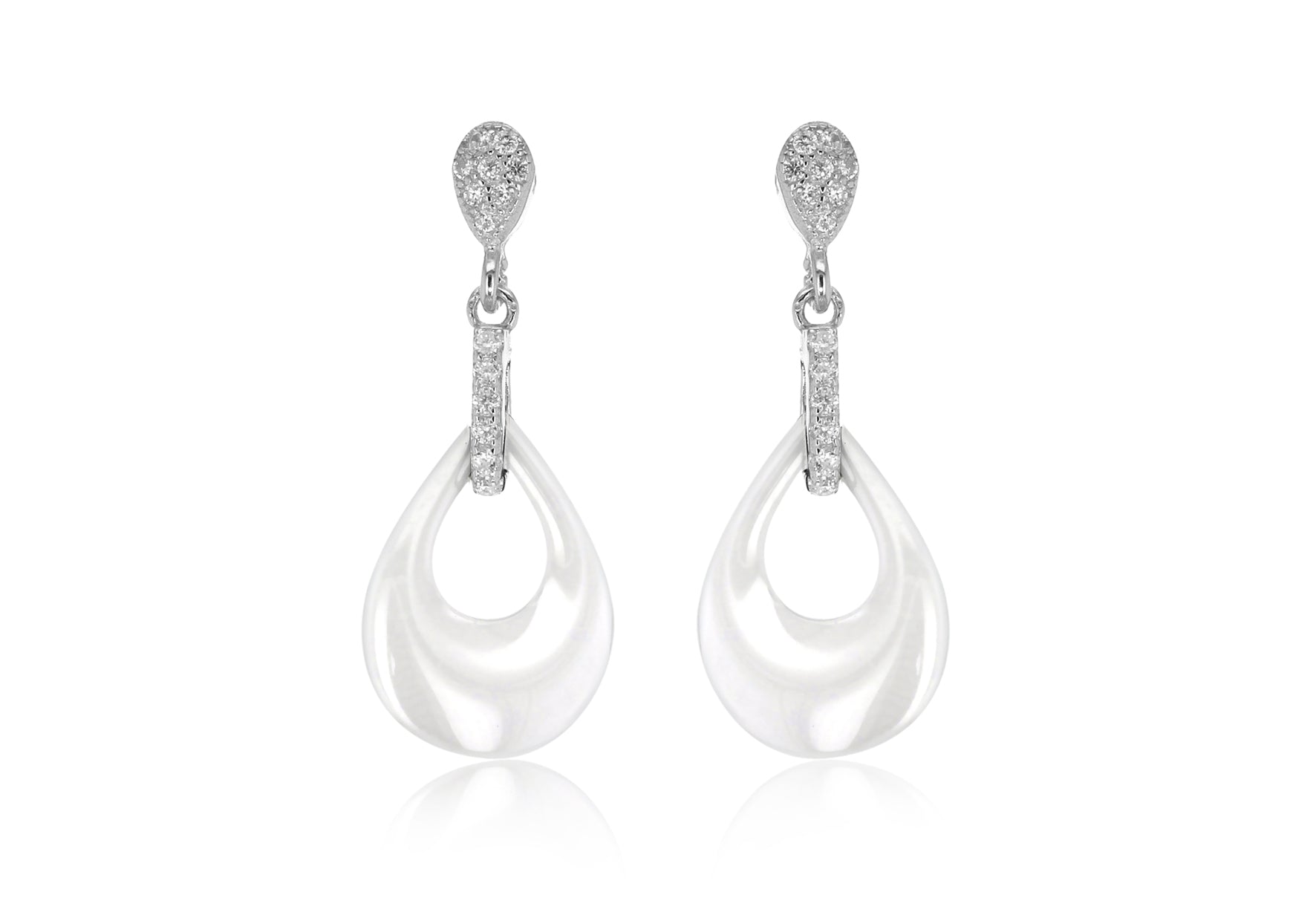 Sterling Silver Rhodium Plated White Ceramic Tear Shaped Zirconia Teardrop Earrings