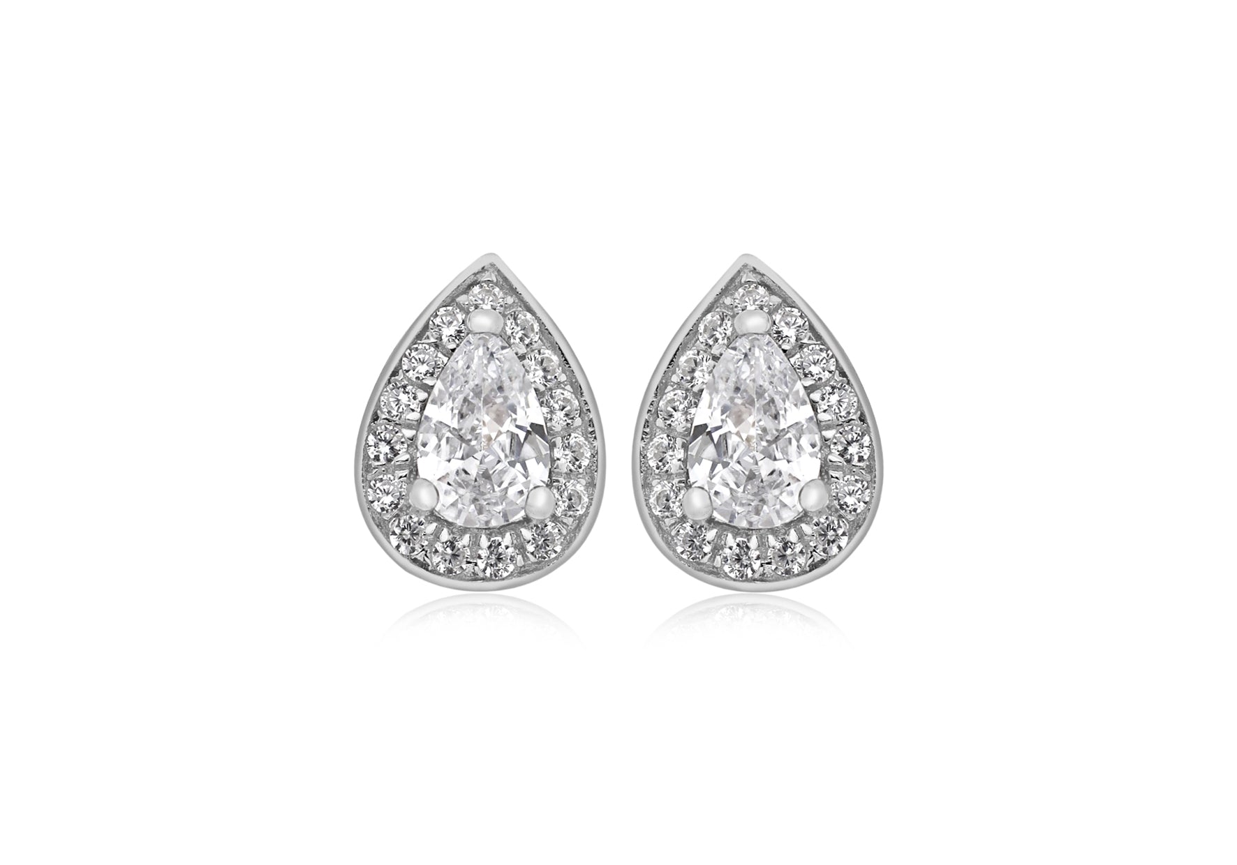 Width: 7.5mm; Height: 10.5mm; Finish: Rhodium; Fitting: Post; Setting: Claw; Stone Details: 1x 6mmx4mm Pear Shaped CZ, 15x 1.3mm Round CZs; Style: Stud Metal Colour: Silver Metal: Silver