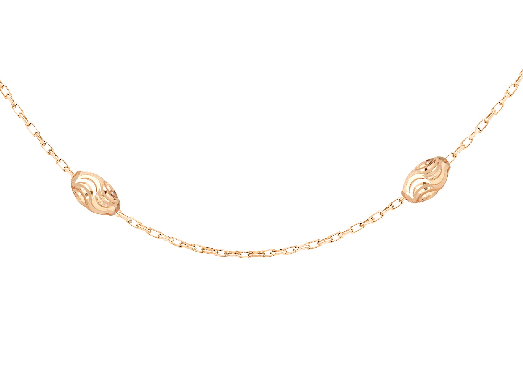 Details: Balls 3.9mm x 6.5mm Length: 46cm/18" Width: Chain 1.2mm Finish: Gold Plated Clasp: Lobster Style: Fancy Product Type: Necklaces Metal Colour: Rose Metal: Silver