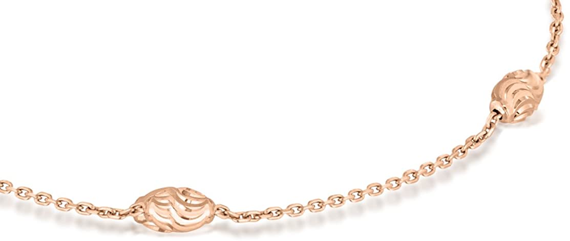 Sterling Silver Rose Gold Plated Diamond Cut Ball and Trace Chain Necklace