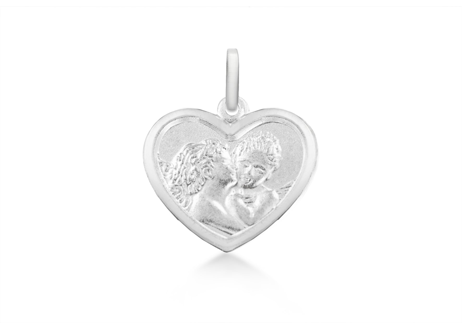 Sterling Silver Kissing Angels Heart Pendant 19mm