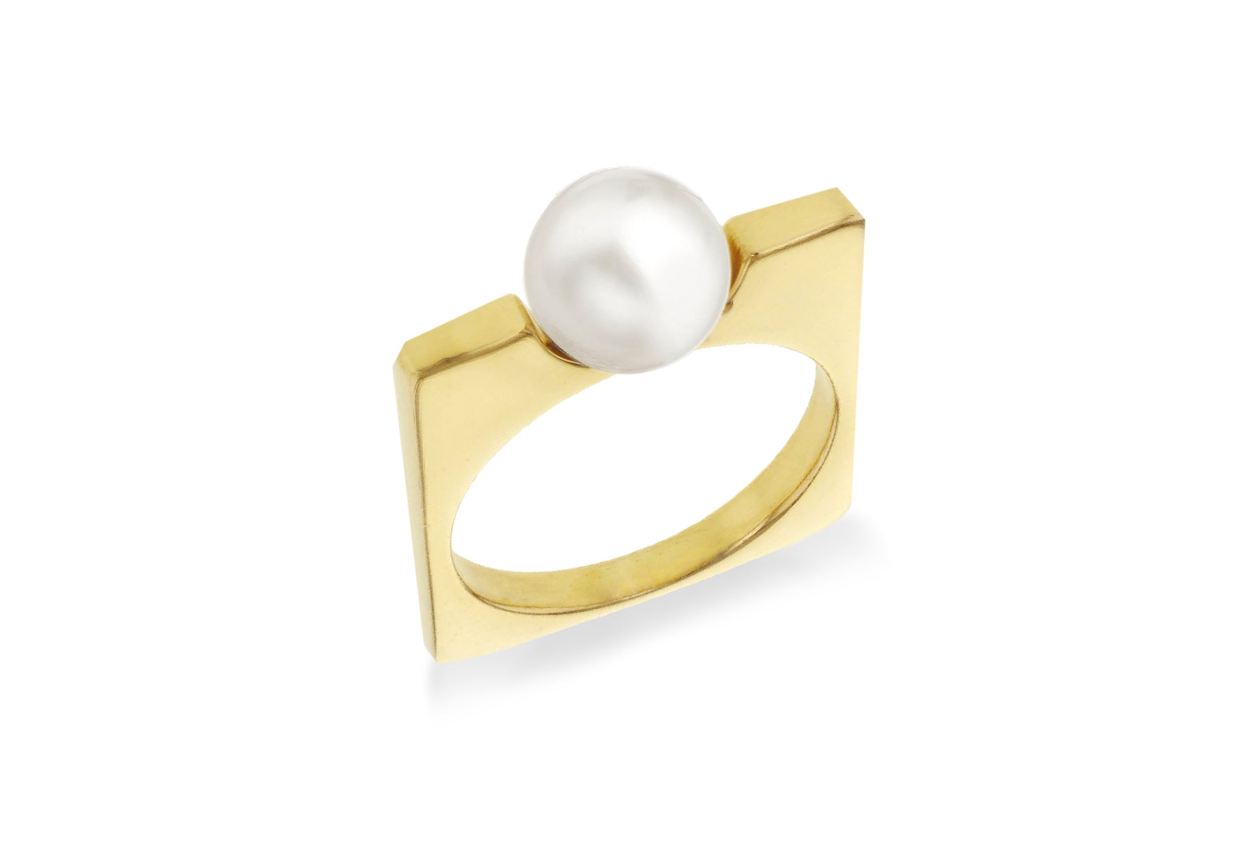 Sterling Silver Yellow Gold Pearl Set Square Ring
